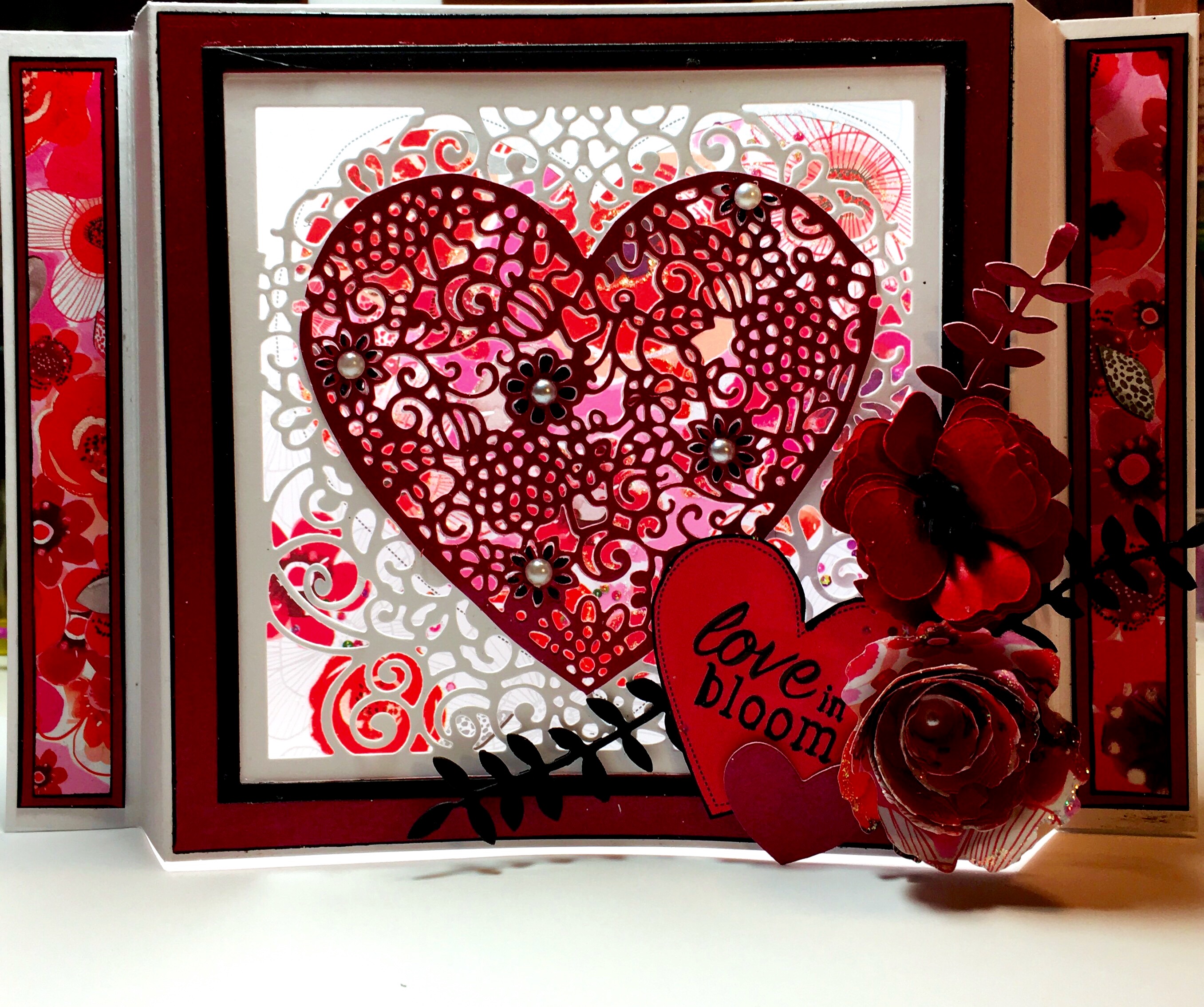 This is card 2 of the Centura Pearl ‘Trends’ colour range. Today features ‘Cherry’ and the Create – a -Card die Floral Lace heart. I’ve also used: Hope you will watch the shows on 1 March 2017 on Hochanda TV.
