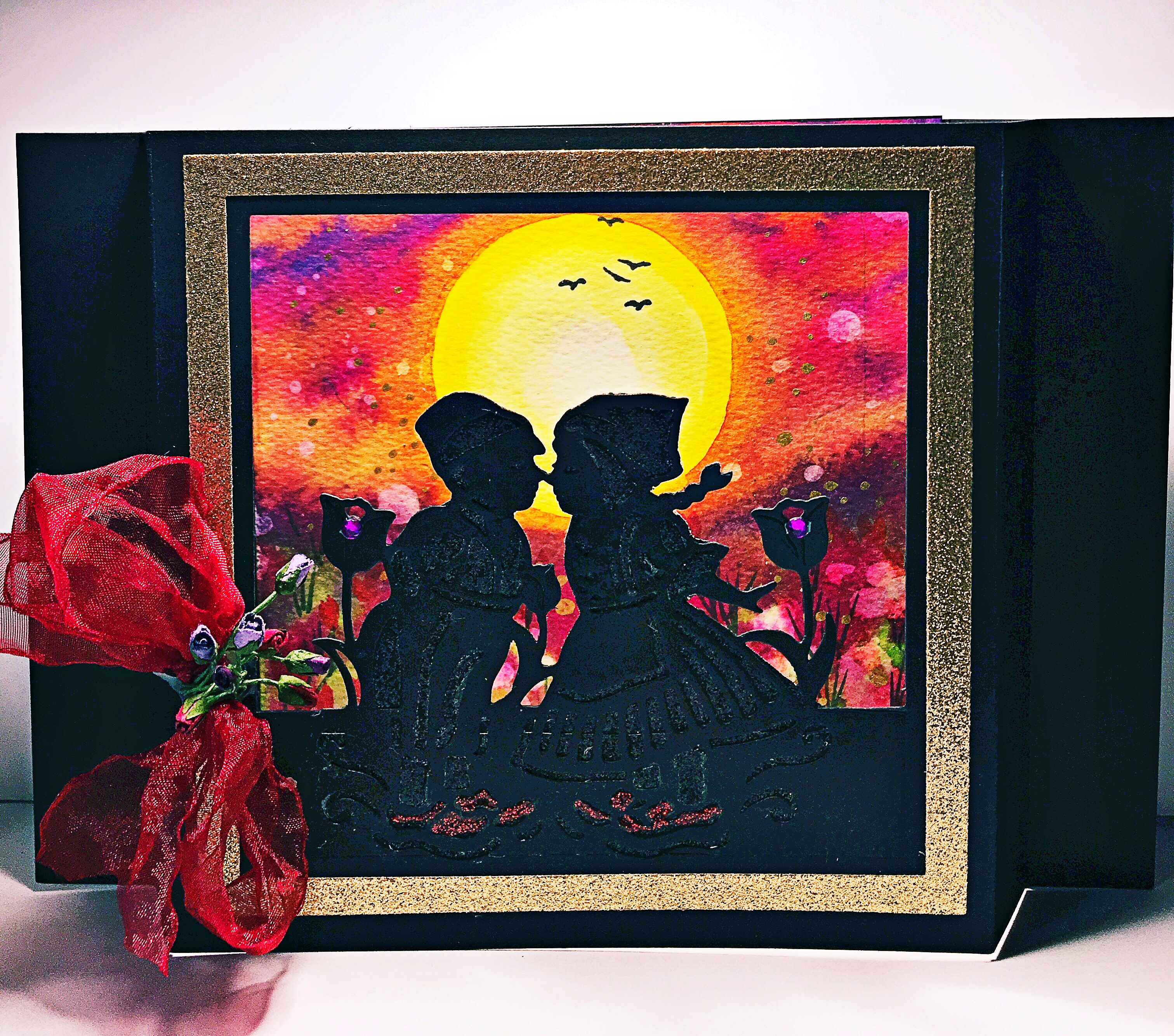 This is the second of 5 design ideas using the same die- ‘Typish holland’ From Crafter’s Companion. Design 2.-scene card. Also used: Black card; Watercolour card; Black and Gold Glitter card; AquaTint inks- Bright and Beautiful; Pebeo masking fluid;Ribbon and paper flowers . Having masked the sun the background was painted. The masking fluid… Continue reading Dutch Edge’ables – Design 2.